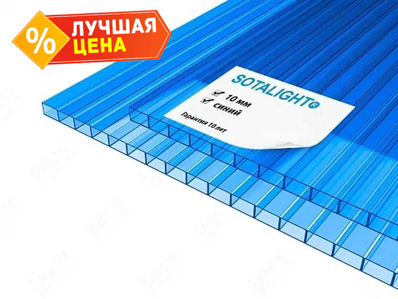 Сотовый поликарбонат 10 мм SOTALIGHT синий 2100х6000 мм